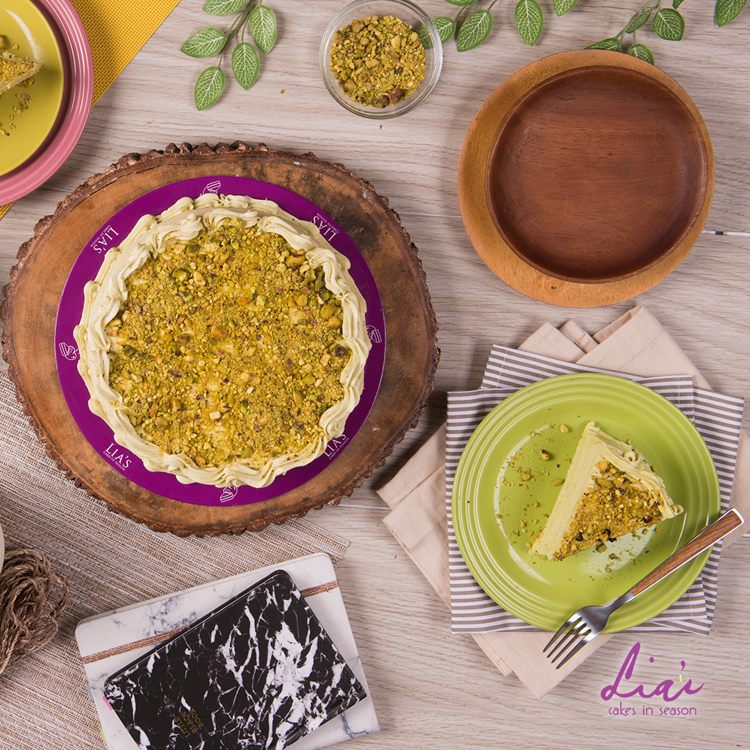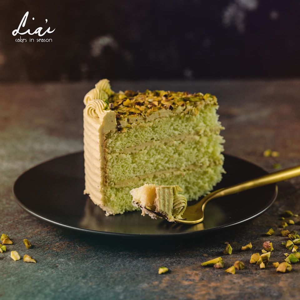 The cake that started it all—a light chiffon cake topped with a smooth, buttery frosting of fresh avocados and finished off with chopped pistachios.