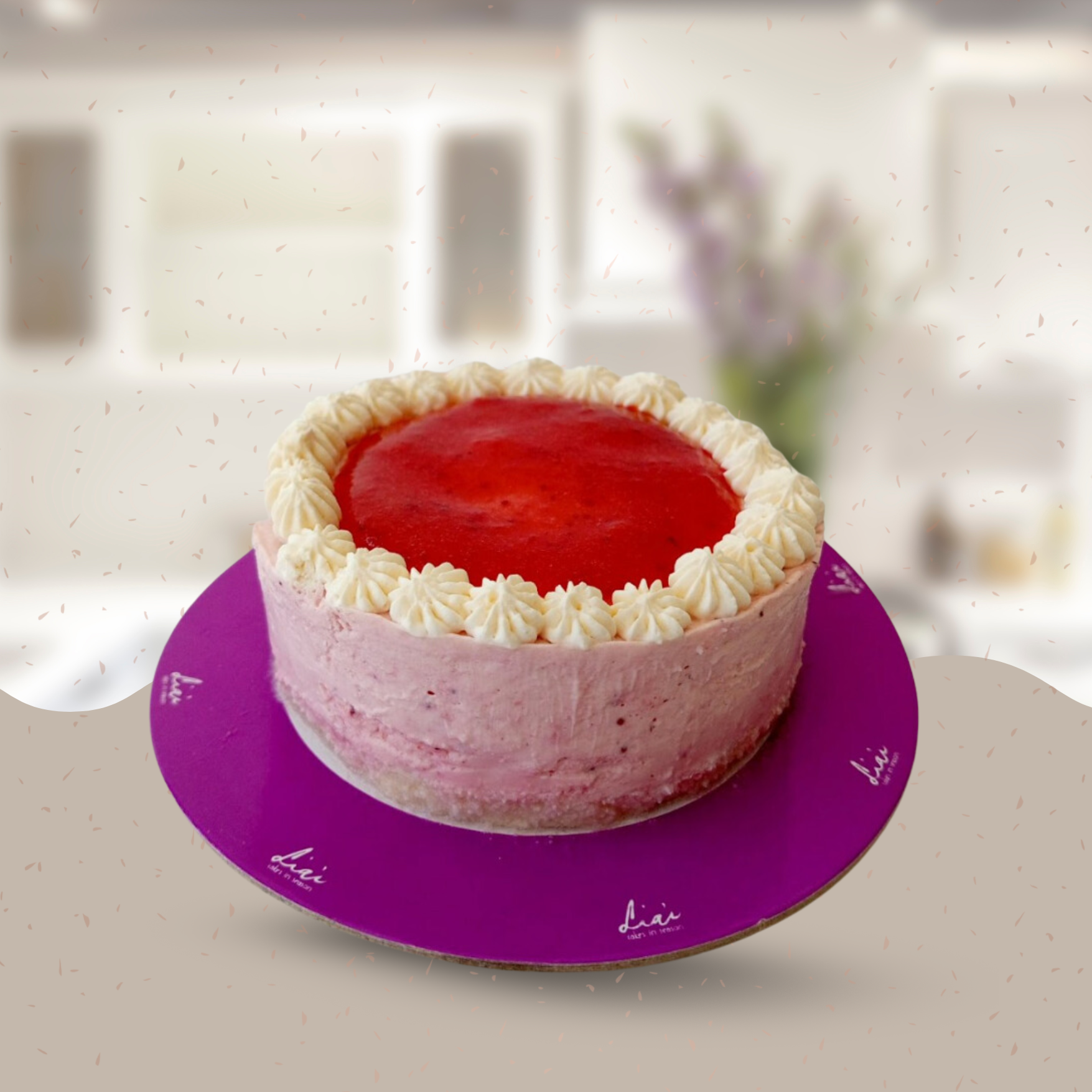 A light, creamy, and flavorful cake with no added processed sugar. Perfect for cheesecake and Strawberry lovers alike!