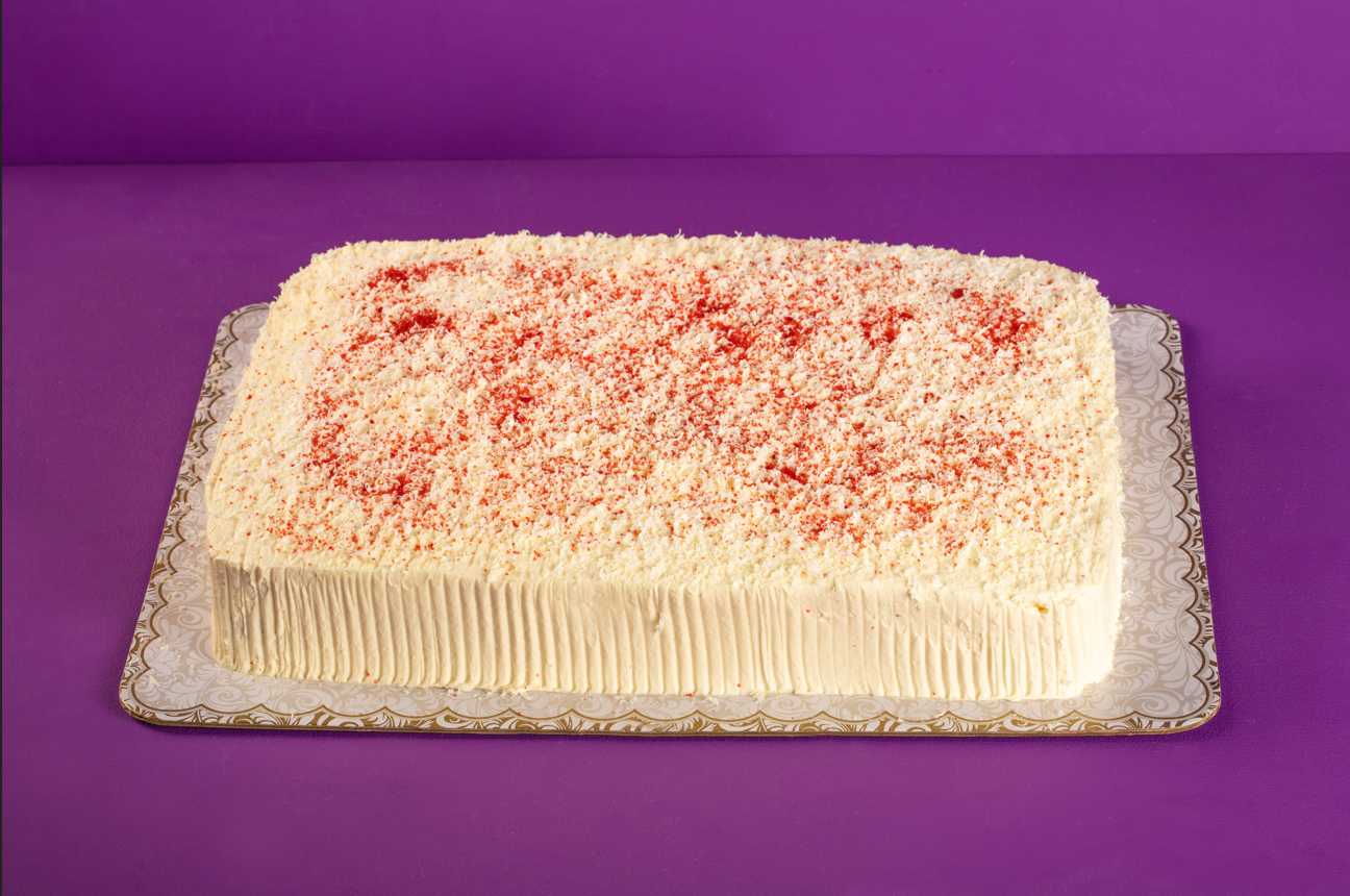 Who doesn’t love a good Red Velvet Cake? Presenting Lia’s take on this classic favourite. Moist red chocolate cake wrapped in smooth butter icing topped with savoury sweet crystal bits.